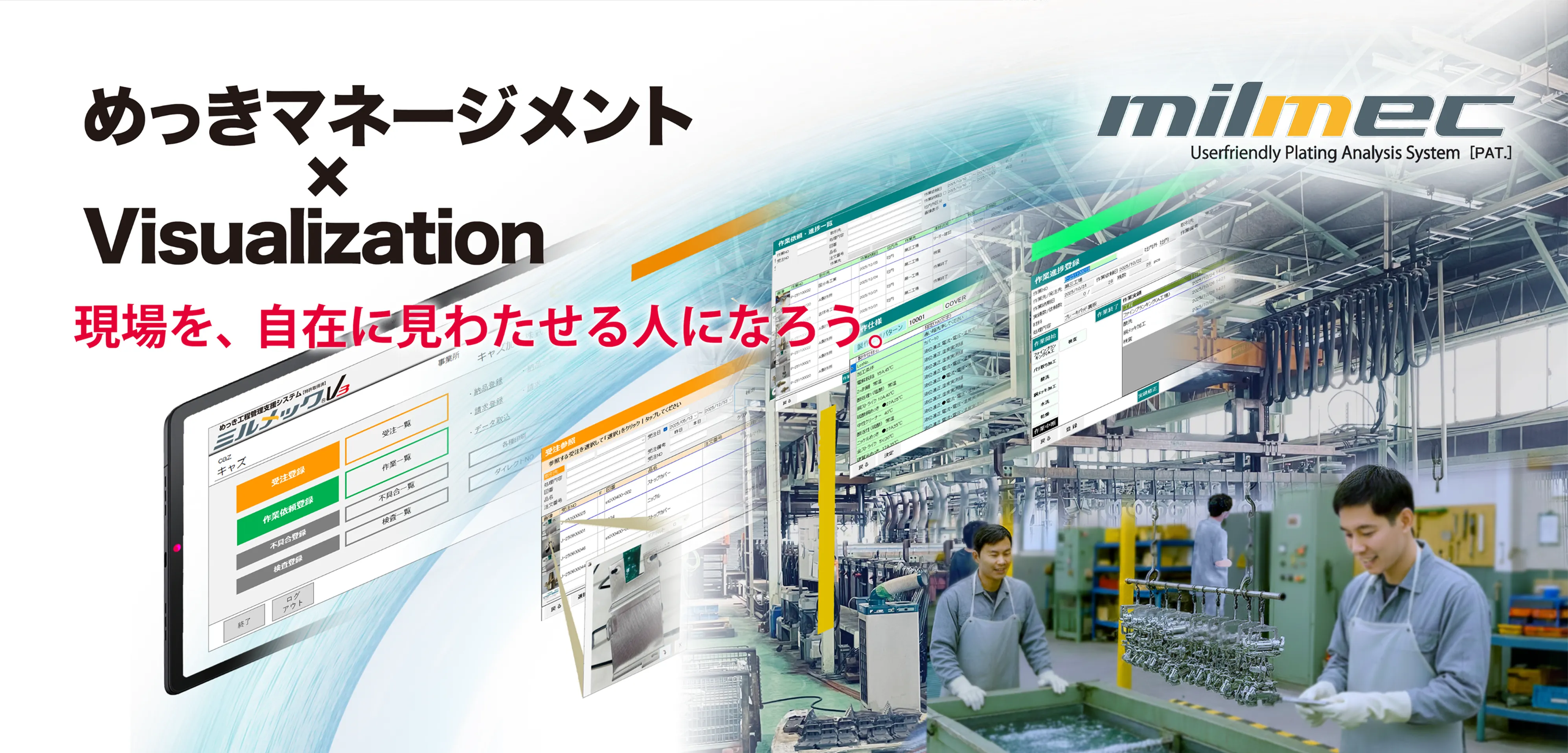 ミルメックはタブレットで工程・品質管理を簡単に徹底できる、めっき工程管理に特化した支援システムです。また、環境問題への対応やペーパーレス化、めっき製品に対するトレーサビリティが求められるシーンでも即応できます。